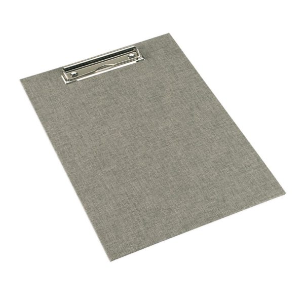 In hochwertigen Buchbinderleinen gekleidetes Klemmbrett mit Clip. Der hochwertige Karton in unseren Klemmbrettern wird aus 100% recyceltem Material hergestellt.