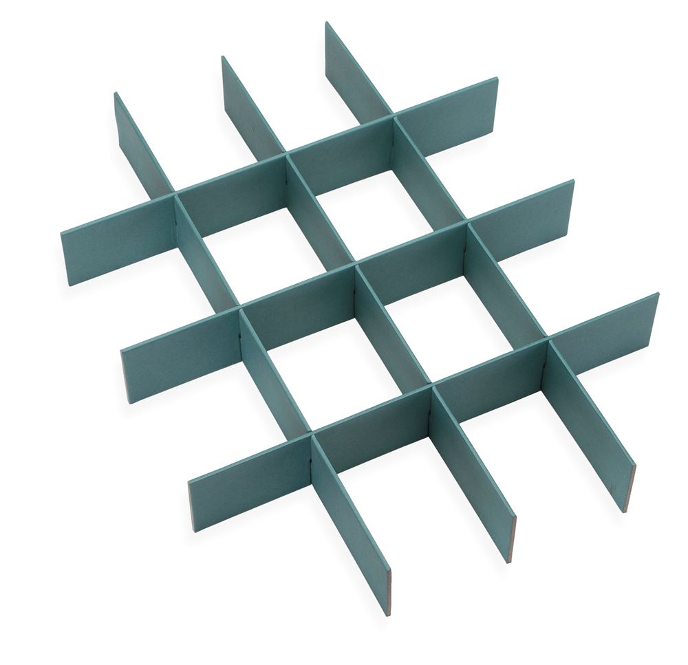 Dank dieser Boxunterteilung aus Karton lassen sich die A4 Boxen von Bookbinders Design in 16 Fächer unterteilen. Ton in Ton mit der Box oder bunt gemischt.