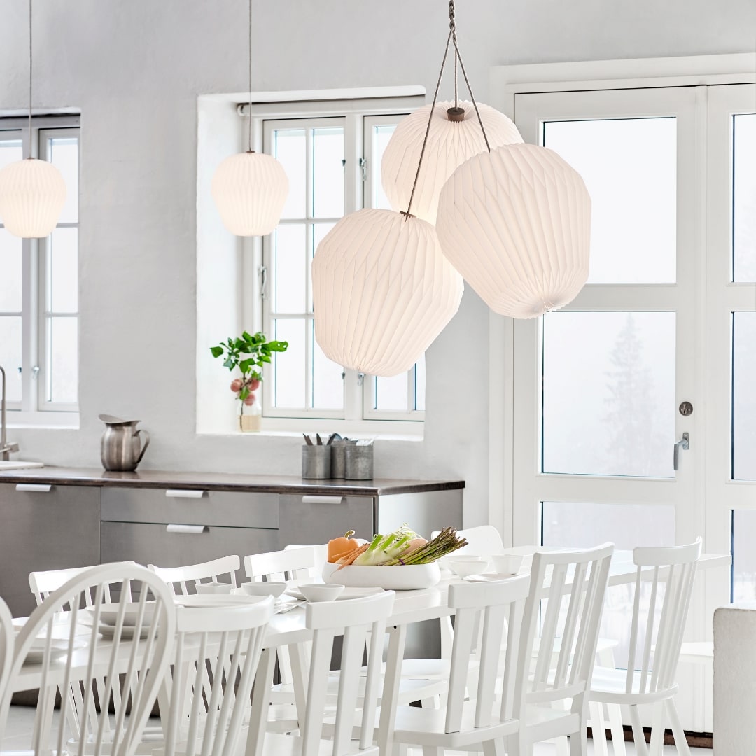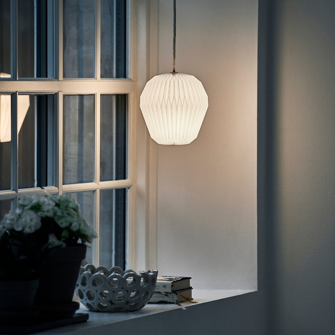 Die Bouquet 130 1 von Le Klint ist eine feine Pendelleuchte mit floraler Inspiration. Der handgefaltete Schirm aus Kunststoff oder Papier bringt eine warme Lichtstimmung und elegante Einfachheit – ideal für kleine Räume oder als dekoratives Einzelstück.