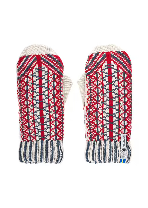 Lycksele sind 4-lagige Fäustlinge im Lycksele-Design gestrickt.