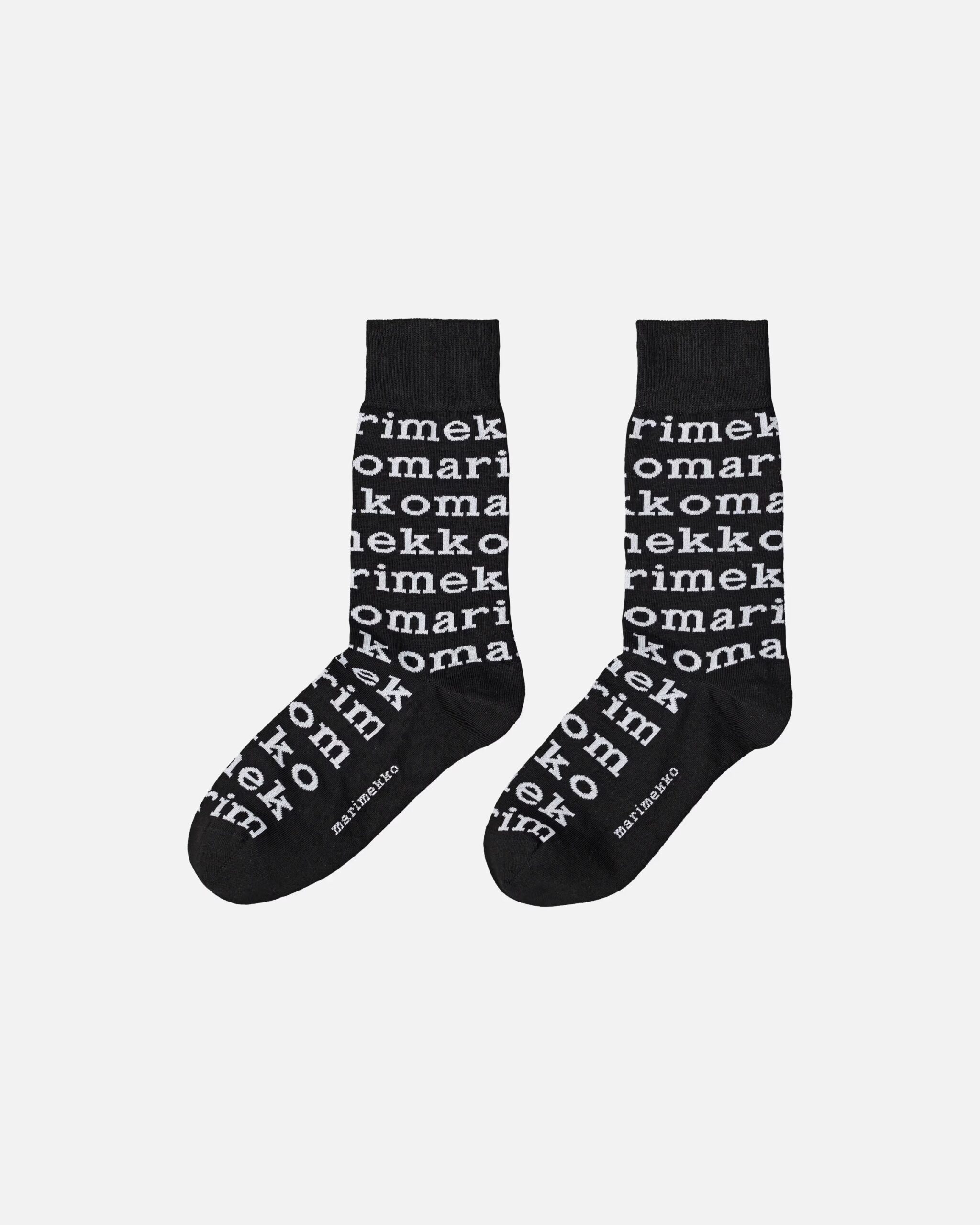 Die Kasvaa-Socken von Marimekko bestehen aus einem Baumwollmischgewebe und sind mit dem typischen Marimekko-Logomuster versehen.